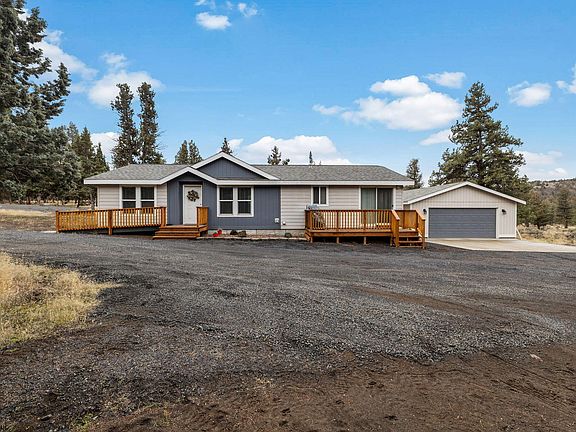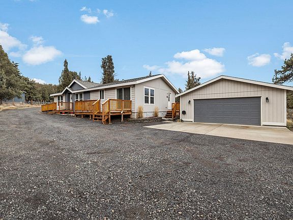 The best of Crooked River Ranch! Backing to National Grassland and trails that lead to Steelhead Falls...enjoy the privacy this home has to offer. Just over 2 acres with room for a shop and garden to make it feel like home. A spacious kitchen opens up to the living room or mudroom to access the detached 2 car garage. Cozy up to the pellet stove for those cold winter days and enjoy forced air & ac in the heat of summer. Generous primary bedroom features a soaking tub and double vanity. Additional 2 bedroom and 1 bath makes plenty of room for the family or home office space. Large driveway and parking area has fresh gravel laid and storage shed for more toys. This location is hard to beat, contact the listing agent for a showing today!
