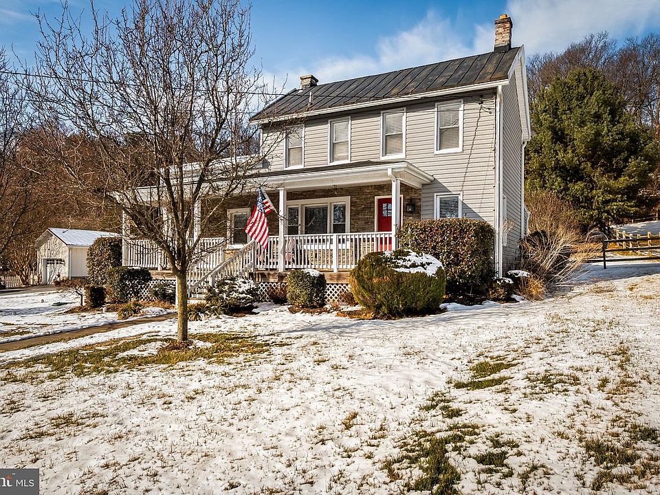 Welcome home to this enchanting, fully renovated farmhouse dating back to the 1900's, where historic charm meets modern living. Renovated from top to bottom just a few years ago, this home sits on just shy of an acre with a fully fenced yard backing to tranquil woods—offering privacy, space, and timeless appeal. Inside, you’ll find original brick wall accents, sliding barn doors, granite countertops, stainless steel appliances, and a warm pellet stove that anchors the living room—perfect for cozy evenings. The inviting front porch sets the scene for slow mornings and evening views. The home features three bedrooms, including two on the main level with a full bath, plus a private upstairs bedroom with its own full bath—ideal for guests or a peaceful retreat. Additional improvements include a waterproofed basement with new sump pump (2018) and a new water heater and pressure tank (2026). Located in the highly sought-after Hereford School District (Blue Ribbon Schools), this charming farmhouse offers the perfect balance of country living with convenient access to Rt. 30, Falls Rd, and I-83.