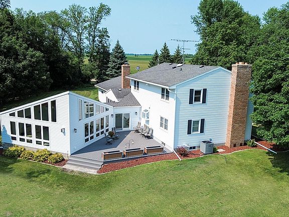 First time on the market! Just outside of Hutchinson on 6.89 acres is where you will find this 2-story home with a large additional great room. Features foyer with open staircase, kitchen with granite counters, living room with gas burning fireplace, m.f, family room with wood burning fireplace and a great room with vaulted ceilings & newer windows. Upper level has 4 bedrooms including a primary bedroom with walkin closet & bath. Many built ins and extras throughout. Maintenance free deck off of great room overlooks large, private treed yard. Oversized 3 stall garage and 30 x 40 pole shed- Great storage. New septic in 2023. This one-of-a-kind property is ready for you to enjoy.