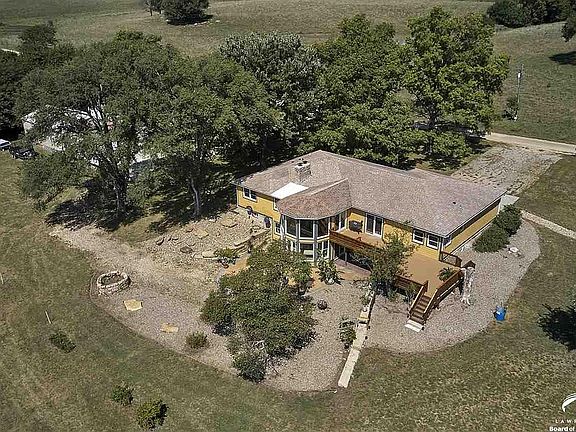 New pond with native limestone and solar powered waterfall. Panoramic vista from south windows. Dramatic views of lightning storms and new moon star scapes. Builder's prime site selection of favorite setting from years of searching the area. Upstairs & downstairs kitchens, 6 bedrooms & 4 full baths. Large deck and patio - this house is fabulous for entertaining! Replace town sounds with tree frogs and songbirds and use the outbuilding for your passionate pursuits. 3 car garage, 2-level atrium. Deck+