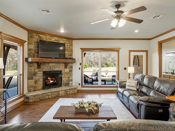 An immaculate 4 bedroom 3 bathroom home in the Sequoyah school district. This home is an open concept with a unique detail at every turn. From the beautiful granite countertops, speakers and stereo system throughout the interior and exterior, an upstairs theater room/game room, and a xxl floored attic that's decked and framed in for easy conversion to another large room & has a gas hookup available. A few concealed features are the front porch electrical outlets under the eaves for easy Christmas light hookup, extra electrical hookup on the west side of the home for easy pool hookup, a concealed charging station in the dining room cabinet, and electrical outlets in the floor in the living room. There is plenty of storage with a 3 car garage with side entry, and a 40 x 40 shop with concrete and 15 ft sheds on each side.