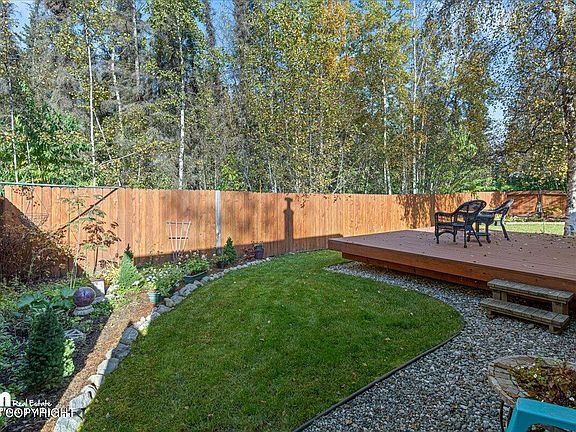Beautiful Eagle River home only 1 mile from downtown shopping and restaurants, on a secluded cul-de-sac. Lots of upgrades to include new windows, new roof, flooring, a custom kitchen, stunning landscaping and much, much more. Sitting on nearly half an acre, this gem features $13k plus in professional landscaping, 3 decks with a deck weight-rated and wired for hot tub or spa, a fire pit, shed, and fenced front & back yards. Not to be out done by the exterior, the interior has new custom Anderson windows & sliding doors, updated lighting, a built-in custom live-edge wood entry bench, slate floors, and a wood-burning stove. Custom concrete counter tops provide plenty of space in a kitchen featuring a double oven, gas range, custom range hood, and hickory cabinets provide plenty of storage. The master bath features custom slate shower with triple shower heads and double sinks. Finally, don't forget the large 2-car garage with custom workbench, and RV parking. Assumable VA loan at 4%! This property is immaculate and not one to be missed.