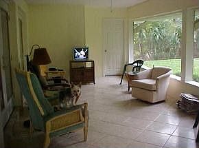 In law or rental income with private entry/bedroom/sitting room/full bath/kitchen .Modern living with fabulous great room 33x21 filled with 3 sets of French doors.Focus point with Fireplace and lovely kitchen with large kitchen island.Wooded -Tropical outdoors around 1 plus acre lot.Concrete paths -large stone patio- enclosed porch just to enjoy Tropical Foliage.Main home has 3 bedrooms 2 full baths.3 car garage. Chain fence around home.Brokered And Advertised By: Cornell Real EstateListing Agent: Margret Cornell