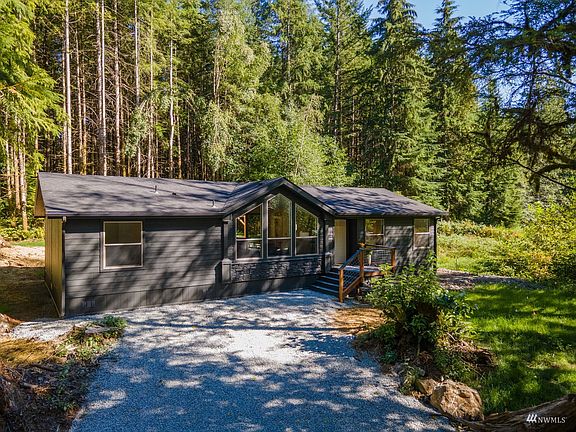 Welcome to your new home, located in Alger with quick & easy access to I-5, just 15 minutes to either Burlington or Bellingham. Entering through the gates and down the freshly graveled drive, your home is set in the back of the lot for optimal privacy. Surrounded by tall evergreens, the 1.38 acre lot is filled with dappled sunlight, w/ an equal mix of open & wooded space. Step inside, and you'll immediately feel the airy quiet that comes with living at this sanctuary. Tall ceilings and big windows fill the home with light, where you're immediately drawn to the updated, spacious & open kitchen. The home also features a large primary bedroom w/ walk-in closet and full bathroom, another full bath, two additional bedrooms, A/C & laundry room.