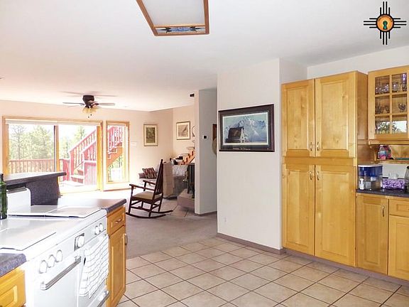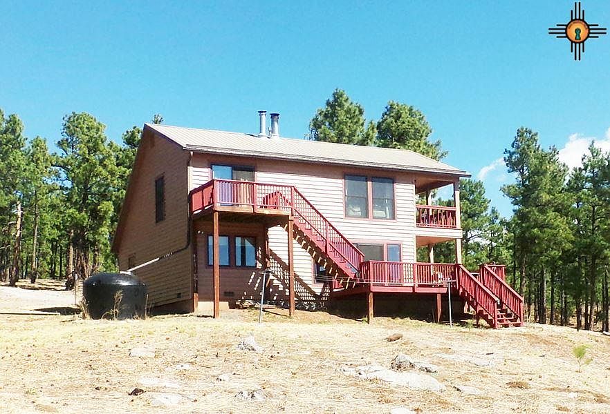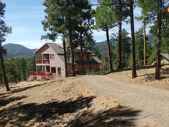 This lovely modern mountain home brings the outside in! Huge windows and wrap around decks let you enjoy the forest, our climate and the mountain views. The home has a private setting with no close neighbors. You will love the large kitchen with plenty of cabinetry and vintage cookstove. The upstairs owner's retreat is large with library, office, en-suite bathroom and private covered deck. The open floor plan downstairs includes large kitchen, dining area and living room with wood burning stove. Propanel roof; the propane tank is owned and will transfer with the property. There are two car-ports, plus a workshop building. The acreage is wooded, and basically level around the house, with a drop down to a lower level and interesting boulders. Come take a look at this beautiful mountain property - you won't want to leave.