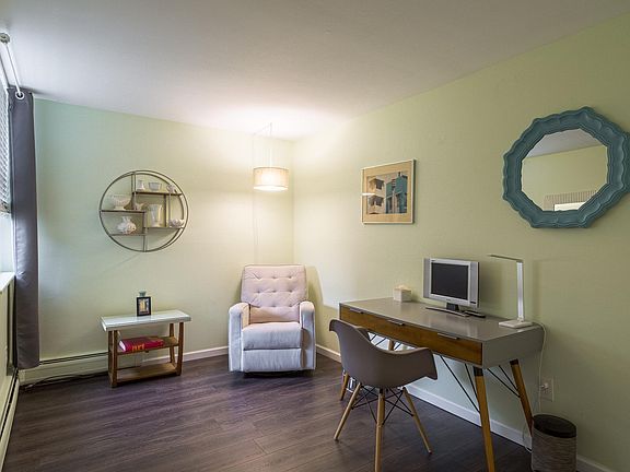 This unit comes fully furnished with charming decor and furnishings. Includes everything you could need including, living room furniture, dining set, outdoor furniture, propane BBQ, office desk, electric fireplace, beds, linens, towels, comforters, kitchen ware and appliances, air conditioning, TV, kayaks, floaters, life jackets, cable hook up in 3 rooms and much more, too much to list. Can move right in and only bring your bathing suit and clothes. Heat, water and garbage service included. Only complex to boast DIRECT private access to 2 popular lakes. Great opportunity to be a lake front tenet without worrying about lake front taxes. Direct neighbors are quiet, everyone is friendly. Very safe neighborhood. Lake living at its best. Won't last long.