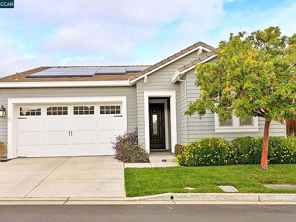 55+ Resort Living in Trilogy. Tucked up in Back of Firenze Village. Neutral Wood-LookTile Floors Throughout, Many Additional Tile Accents, Decorator Light Fixtures & Ceiling Fans. Light and Bright Decor. White Kitchen Cabinets, Quartz Counters w/Tile Backsplash, SS Appliances, Formal Dining Room with Accent Wall, Gorgeous Electric Fireplace w/Floor to Ceiling Stone Facing, Built-in Entertainment Center, Primary Bedroom w/Wall to Wall Built-in Cabinets & Drawers, Bath with Heated Floor, Double Sinks & Walk-in Closet with Organizers. Office/Den & Laundry Room w/Washer & Dryer, Upper & Lower Cabinets & Quartz Counter. Patio, Grass, Fruit Trees is an Easy Maintenance Yard. Gorgeous Clubhouse, Cafe, Event Center, Indoor & Outdoor Pools, Pickleball, Tennis & Bocce Courts, On-Site & Off-Site Activites and so Much More