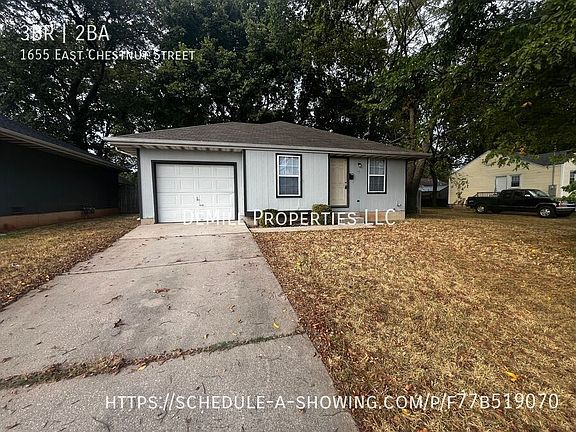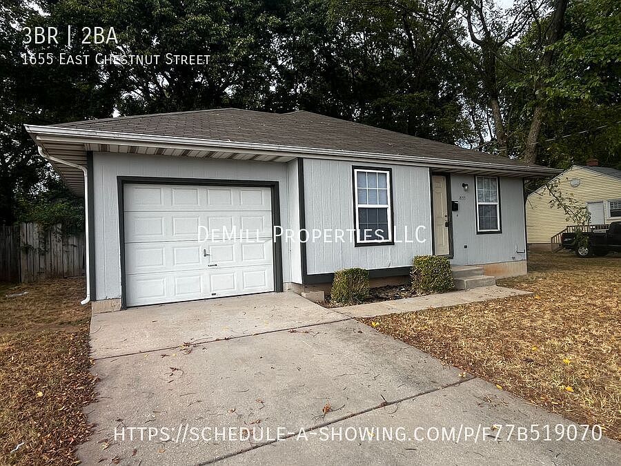 Welcome to 1655 E Chestnut St, a beautifully updated 3-bedroom, 2-bath ranch-style home in the heart of East Springfield. This single-story residence has been refreshed with brand-new flooring throughout, giving it a clean, modern feel from the moment you walk in. Enjoy an open and functional floor plan featuring a spacious living area, a fully equipped kitchen with dishwasher, electric range, refrigerator, and vent hood, plus a primary suite with a walk-in closet and private bath. A one-car garage adds convenience and extra storage. Located in the desirable Weller neighborhood, you're just minutes from downtown, Evangel University, Missouri State, Drury, OTC, and major shopping centers like Glenstone and GRI. Enjoy proximity to local parks, schools, and diningall while living in a quiet residential setting. Don't miss your chance to make this updated gem your next home. Schedule a tour today!