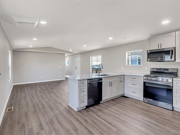 Welcome home - completely updated home with vaulted ceiling in the great room space hosting the great room and kitchen. The all new kitchen, soft close cabinets, quartz counter tops, black stainless appliances. All new windows, paint, flooring, lighting. Bathrooms have been updated with all new soft close cabinets as well, quartz counter tops, new plumbing, toilets and tile surround bathrooms.