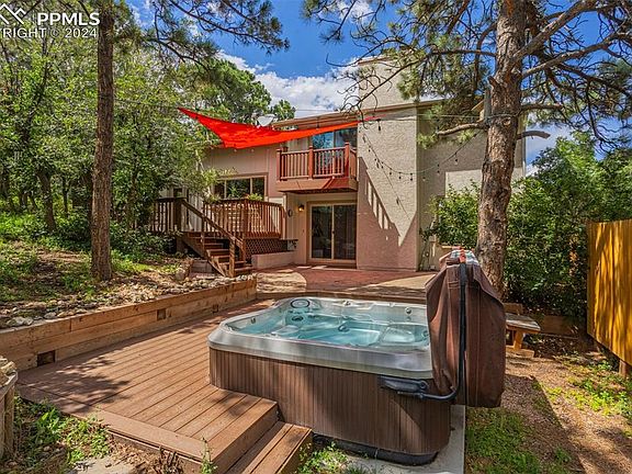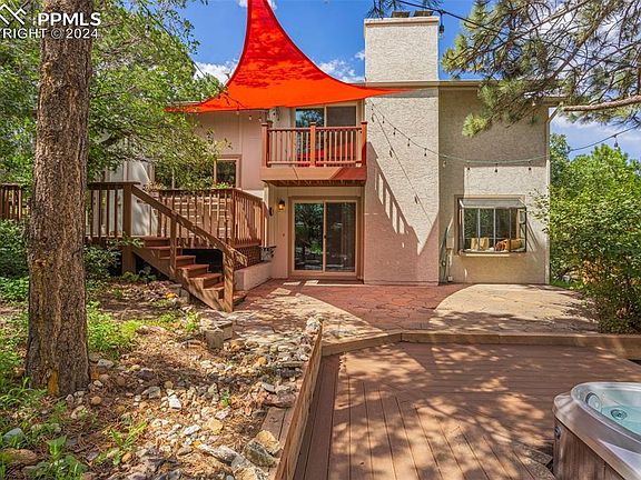 Welcome Home to one of the coolest neighborhoods in the city! Located just a few minutes from UCCS and Pulpit Rock, Erindale is a serene and lush neighborhood with prime convenience to all of the best restaurants and activities that the Springs has to offer! The home sits on a serene .3 acre lot that literally feels like your own private oasis. This stunning 4-bedroom, 4-bathroom, 2-car garage, 2,584 sq ft residence offers a blend of comfort and versatility with its unique 4-level floorplan. Tons of additional parking for your RV's, trailers, boats, toys; you name it! Large new double pane windows with upgraded blinds. Vaulted ceilings with beautiful wood beams equipped with updated electric and light fixtures with dimmers throughout the home. Primary has a walk-out composite covered deck. 2 cozy fireplaces (one in sun room and one in the primary). Backyard has covered deck, patio, hot tub with light features & tons of privacy, shade and mature trees. Kitchen has high-end Dun-Rite engineered countertops, soft close wood cabinets, updated recessed lighting, and a gas line hooked up in kitchen for stove that’s ready to go. Updated electric and AC and whole house fan & humidifier. New exterior paint 2024. This home has been lovingly maintained and beautifully updated- it is clean and move in ready. Welcome Home!