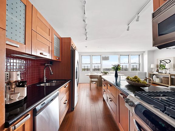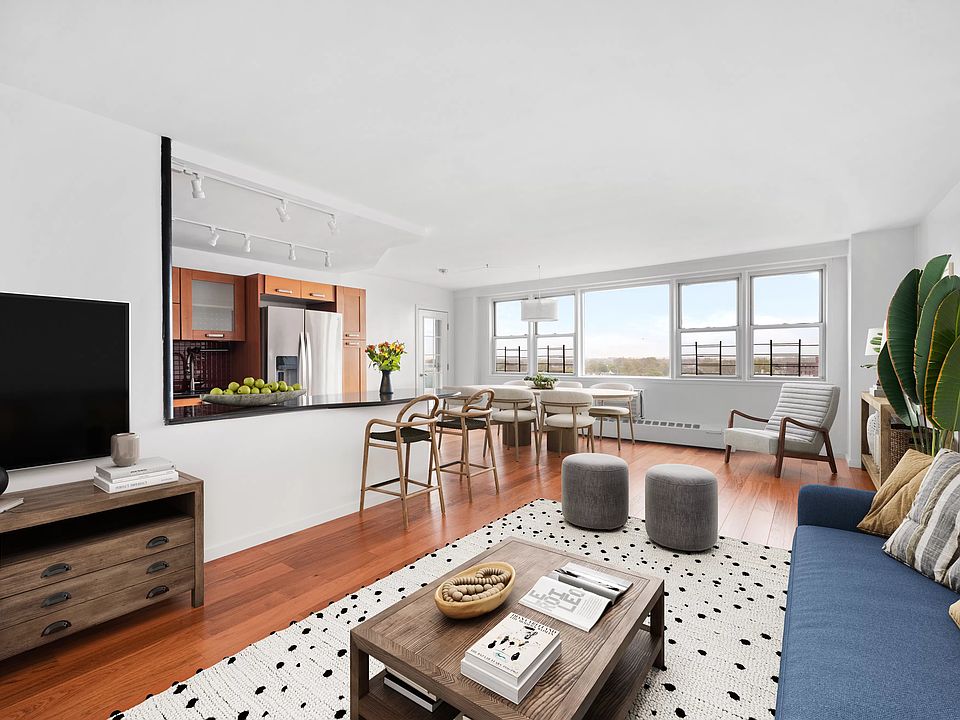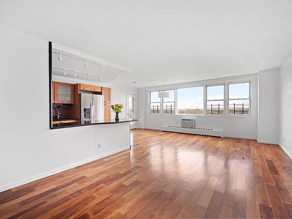 Natural light streams through this rare and super spacious 3 bedroom, 2 bathroom corner unit in full service co-op. With 13 windows, high floor unobstructed views, and numerous layout options, this unit stands out from all the rest! With nearly 1500 square feet of living space, this unit has an expansive living/dining room with an open layout kitchen. The kitchen has been updated with new track lighting that illuminates dining at the extended granite countertop, with room to accommodate four counter stools. The kitchen is also outfitted with stainless steel appliances including dishwasher, a double sink, and striking tiled backsplash. The kitchen, dining and living areas all have easy access to the sizable private balcony. There are three true bedrooms, all considerably sized and well-positioned. In particular, the primary bedroom has an ensuite bathroom, two large closets, and creates a serene private refuge from the rest of the apartment. The other bedrooms flank a shared windowed bathroom with a deep Jacuzzi tub located on the east-facing side of the unit, which provides for views of a full-horizon morning sunrise over Brooklyn. In addition, this unit has handsome engineered wood floors, thru-the-wall A/C units, and eight large and enviable closets. Even beyond the unit, this coop stands out from all others in Brooklyn! It is home to a full sized swimming pool (plus kiddie pool), brand new private playground with bench seating and outdoor chess tables, extensive garden (with plans to be restored), a future basketball court, PLUS 24 hour door attendants, live-in super, many porters, two laundry rooms, storage, bike storage, community room, art gallery, circular drop off driveway, and underground parking! These amenities make living at 1655 Flatbush Avenue a unique and enviable experience! Some of the many neighborhood retailers include Target, Home Goods, and the new Aldi Supermarket located at the shopping complex across the street. Brooklyn College is located a few blocks away, as well as banks, a post office, many eateries and more. Only 2 blocks from Brooklyn College- Flatbush Avenue #2 and #5 trains , and close access to B41, B103, B44, B9 and Q35 buses.