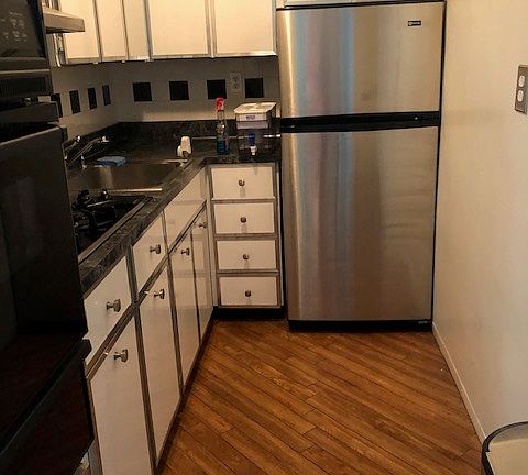 Great elevator building boasts a gorgeous super sunny L-shape studio available to rent as soon as possible. The kitchen has custom cabinets, stainless steel appliances, stone countertops and matching backsplash. The bedroom space boasts a HUGE walk-in closet. The renovated bathroom boasts new cabinets and shelving as well as ceramic tiles and modern amenities. There are hardwood floors throughout the unit and 2 additional large closets, one in the entryway and another one in the dining area. Comes partially furnished with a Queen Bed Frame, Dresser, night table and coffee table. The building has a 24-hour doorman and great neighbours. All of this steps away from the 2/5 trains, great dining and shopping. Ladies and gentlemen this is the deal of the week and it won't last.