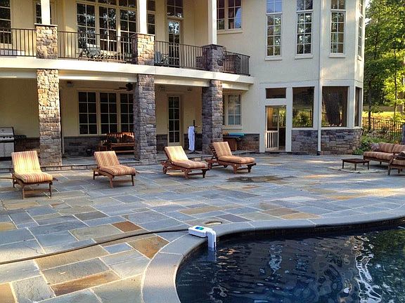 Make a splash this summer entertaining in this exquisite French Country inspired custom built home. The gunite pool with soothing waterfall is the perfect place to spend a summer day and the outdoor fireplace will warm up cool nights. An enormous slate patio is surrounded by beautiful landscaping, creating an impressive space for backyard parties or to simply relax and unwind. Inside, you'll be drawn into the great room with a soaring cathedral ceiling that will take your breath away. A wall of windows and the open floorplan allow tons of natural light to fill the entire home. Spacious yet comfortable rooms compliment one another and were thoughtfully designed for effortless flow. Only the finest quality materials are found throughout.