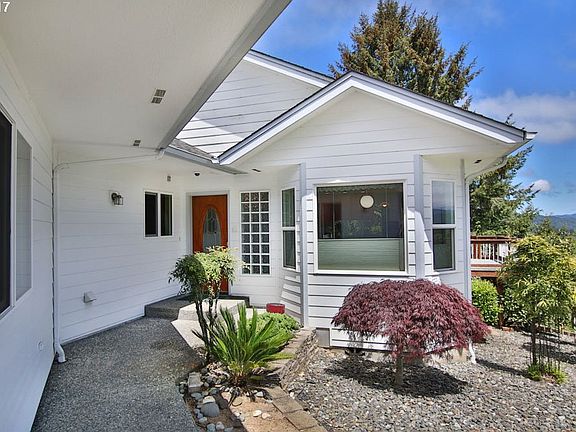 This beautiful home was custom built by local contracting legend, Arney Construction, well known for attn to detail and exceptional quality. Custom Cambria cntrtops, gorgeous custom cabinetry, open flr plan, large windows feature breathtaking panoramic views of trees, valley and river below. This large corner lot has RV prkg w/ hkups, even a fish cleaning station! Beautifully landscaped for low maintenance, w/ fruit trees and berries.