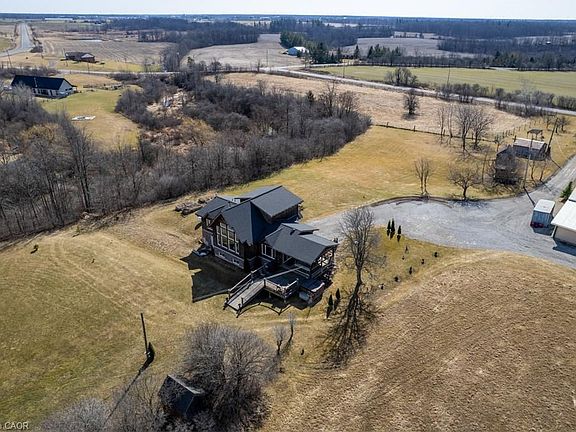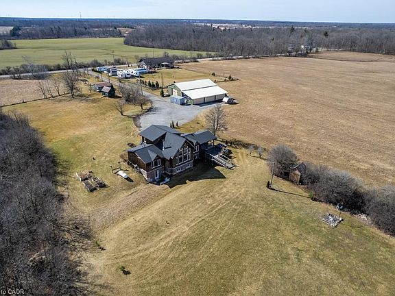 Nestled in the heart of the countryside, this 91.71 acre rural property offers the perfect blend of tranquility and modern luxury. This home is a sanctuary for those seeking a quiet and serene lifestyle. Step onto the welcoming covered front porch. As you step through the door you will immediately notice the pride of ownership. Spacious front foyer leads into the great room with a wall of north facing windows, large fireplace creating a warm and inviting atmosphere, and soaring wood ceilings. The chef’s kitchen is a gourmet's delight, equipped built-in SS appliances and ample counter space. Whether you're preparing a casual meal or hosting a grand feast, this kitchen is designed to meet all your culinary needs. Sliding doors in the spacious dining area lead to a large covered deck offering views of the expansive yard. This outdoor space is perfect for entertaining guests, enjoying a morning coffee, or simply soaking in the beauty of nature. The main floor also boasts two bedrooms, providing ease of access and convenience. The main floor laundry room is practical and efficient, while the bathroom, complete with a luxurious soaker tub, offers a spa-like retreat. The second floor is open, airy and dedicated to the primary suite, which includes a walk-in closet and an ensuite bathroom. The finished basement adds an additional layer of functionality to this home, including a family room and a games room, perfect for entertainment. The basement also has an additional bedroom with a walk-in closet and a large 3pc bath with a glass and tile shower. A convenient walk-out to the backyard makes this space even more versatile. The detached garage / barn is over 3,400 sq ft and is a hobbyists dream. Hoist is included (AS IS). This charming rural property is more than just a home; it's a lifestyle, it offers the perfect escape from the hustle and bustle of city life. Discover the beauty and tranquility that awaits you in this stunning rural retreat.