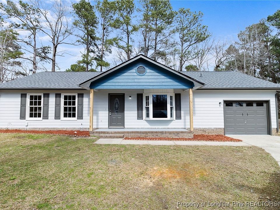 This charming home features an attached 1-car garage plus a detached 1-car garage, perfect for extra storage or a workshop. A large front porch welcomes you into a big foyer, leading to a huge living room with a cozy fireplace and ceiling fan. Luxury vinyl plank flooring flows through the social areas, including a beautiful kitchen with updated cabinets, granite countertops, stainless steel appliances, and a bright eat-in area with bay windows and a modern chandelier. The large master suite has a spacious closet and a modern bathroom with double vanities, contemporary mirrors, and trendy fixtures. Step outside to a big backyard with a large deck, two big sheds, and a detached garage for extra storage.