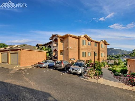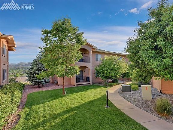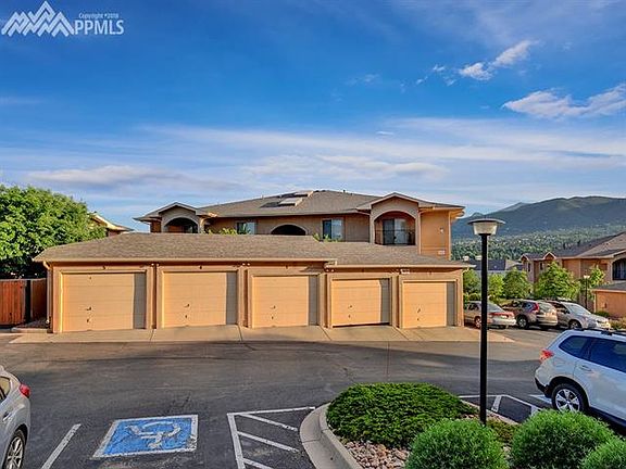 Welcome home to easy Colorado living....Meticulously cared for main level 2 bedroom, 2 bath condominium with a detached 1 car garage in the beautiful southwest of Colorado Springs. Expansive view of the mountains greet you as you enter the open floor plan. The kitchen has slab granite, granite sink and a breakfast bar. The living room has a fireplace and walk out to an enchanting patio which looks out onto Cheyenne Mountain, the mountains and a "peek" at Pikes Peak. The baths have granite and raised vanities.