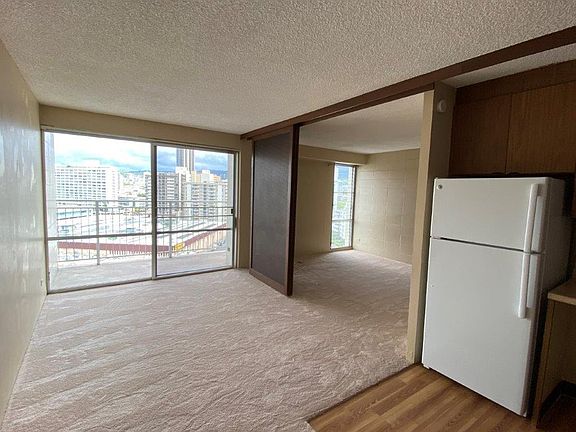 Location! Location! Location! This spacious 1 bedroom, 1 bathroom unit with lanai is conveniently located in the Kapiolani area. It's near the bus line and in the vicinity of Ala Moana Shopping Center, restaurants, Walmart and freeway access. Partly furnished, it comes with refrigerator, range/oven & hood/fan. Rent is $1675.00 and includes electricity, internet, water, sewer, 1 covered parking stall, and storage locker. Kapiolani Manor is a secured building with amenities including rooftop pool, trash chute, secured parking garage, resident manager & coin laundry on each floor Sorry, no pets. This is a NON-SMOKING unit. Initial Lease, 1 year. No Smoking. No Pets. Please click "Request a Tour" for showings. All proposed adult occupants must see the unit to apply. Applications are available at showings. Copies of valid ID (Driver's License, Hawai'i State ID or Passport) & current pay stub along with $22 non-refundable Application Fee per adult applicant are required to complete application. Incomplete applications will delay processing. Application Fee may be paid by personal check or money order at time of showing.