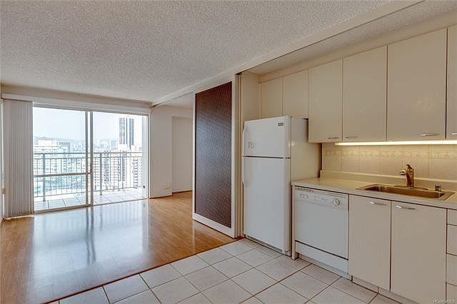 High floor 1 bedroom, with city & mountain views. Convenient sliding doors create functionality between the bedroom & living room. 2 bathroom sinks for couples. Cool tile & laminate floors. Relax with your keyed entry & elevator. Covered parking close to the elevator. Storage locker. Walk to Ala Moana Shopping Center, the beach, Walmart, SamâEUR(tm)s Club, restaurants, entertainment, the bus and so much more. Low monthly maintenance fees include: electricity, basic cable tv, water, sewer, amenities. Community laundry on each floor. Pool. No Pets.
