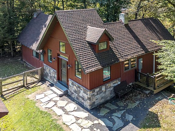 Tucked away at the end of a private drive, this custom-built rustic cottage sits on 2.26 wooded acres overlooking the Neshaminy Creek. A wraparound, two-level deck offers stunning views of the water and surrounding trees, creating the perfect private retreat. Step inside to a tiled foyer that opens to the impressive great room, featuring a 17’ vaulted, beamed ceiling, a full stone fireplace, gleaming hardwood floors, and walls of windows that fill the space with natural light. The kitchen offers designer cabinetry, stainless steel appliances, a double refrigerator, built-in microwave, and access to the rear deck for easy indoor-outdoor living. The spacious bedroom is a true retreat with a vaulted ceiling, exposed beams, stone wall fireplace, walk-in closet, and oversized windows. The updated bathroom includes a glass-enclosed double shower, counter-height vanity, tiled floor. Mud room with laundry area and powder room. A cozy loft overlooks the great room, perfect for an office or reading nook. Outdoors, enjoy the large two-level wraparound deck where you can relax and take in the sights and sounds of nature. Additional features include a detached oversized two-car garage (23' x 19'), plus a second large garage-style storage shed ideal for equipment. Surrounded by trees and backing to township parkland across the creek, this home provides a peaceful, secluded setting while still being just minutes from major roads, shopping, dining, and conveniences. A rare opportunity for a private retreat with easy access to everything—schedule your showing today!