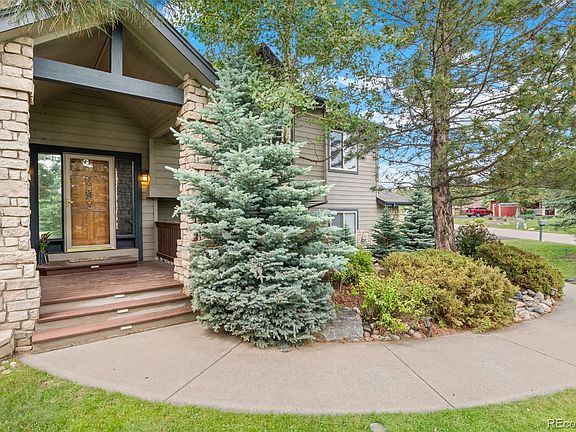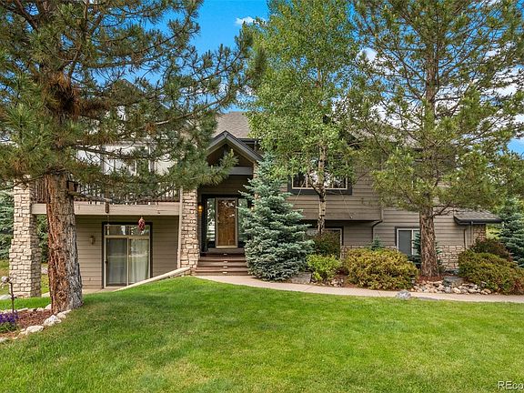 RARE HOME in the TRAILS AT HIWAN! SUPER CONVENIENT LOCATION JUST A SHORT WALK TO OPEN SPACE TRAILS, Buchanan Rec Center and fields, award-winning schools and shopping. New Roof, newly painted inside and out, open and bright Great Room floor plan and tons of outdoor entertaining space. The Trails at Hiwan is one of the most desirable locations in North Evergreen and this section of the Trails is on a quiet area of 3 cul de sacs creating a safe environment for children.   The main floor provides vaulted ceilings that includes a large great room with a dramatic stone/gas fireplace and an open concept that with a spacious updated kitchen and dining room and hardwood oak floors.  The kitchen includes tons of storage space, stainless steel appliances, granite counter tops and a walk-in pantry. There are decks off the great room and kitchen.  Continue down the hall to a very large primary suite including a walk-in closet and five piece bathroom with a separate water closet.  Across from the primary suite is a full bath and two additional bedrooms for office space or young children.  The lower walkout level includes a large living room with gas fireplace, two large bedrooms, a cool "fort' under the stairs, laundry, full bath, a walkout patio and access to the 3 car garage.  The home sits on a corner lot with healthy, mature trees.  The back yard is private and fully fenced with a storage shed and flagstone fire pit area.  Major shopping is about 2 minutes away and DIA is only 45 minutes away.  You can also reach the slopes in 45 minutes.  Evergreen is the perfect community for residents of all ages and all hobbies.  There are hundreds of miles of hiking trails, fun shopping and restaurants, theater and quick access to Denver and mountain resorts.