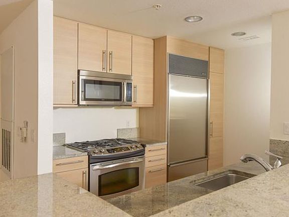 Short-term lease. Experience sophisticated living in this spacious one-bedroom, 1.5 bath, plus den/office at The Mercer in Walnut Creek. This unit features an open floor plan, a modern kitchen with high-end stainless steel appliances including a Sub-Zero refrigerator and 30" range, high ceilings, and a private balcony. The versatile "bonus" den is perfect for a home office or guest space. Enjoy luxury amenities including a fitness center, pool, spa, and concierge service. Located downtown, 1.5 blocks from BART, and in the center of top dining, arts and shopping options from the weekly farmer's market, big stores and a wide range of boutique shops. Zoned to top rated Acalanes schools. The owner pays the HOA dues, which include water/trash. No pets. Short-term month-to-month lease preferred beginning in October. Dedicated parking and storage included. No smoking.