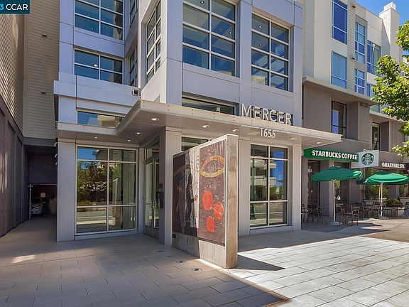 Purchased as a second home, used only a few weeks each year since 2010, “barely lived-in” is no exaggeration. Pristine. The condo is EAST facing with lots of natural light, and overlooks an interior courtyard with a quiet location towards the back of the complex. Gleaming oak floors, sumptuous bedroom carpet, Hunter Douglas window shades, balcony, and a full-sized washer/dryer in the laundry room. With a modern clean feel--this home is a standout. The efficient kitchen includes Subzero/Bosch appliances, Studio Becker cabinets, designer tile backsplash, stone counters, pantry, microwave, and gas range & oven, all in like-new condition. The primary suite has large windows & a walk-in closet. The spa-like primary bathroom has an oversized soaking tub, large shower, and dual sink vanity. There are 2 deeded parking spaces & a storage space. In the heart of the Downtown ½ block from the WC BART, across from Regional Center for the Performing Arts, amazing shopping & restaurants. The Mercer was built in 2007 by Prometheus and has some of the best amenities and design features of any condominiums in CoCo County. Huge resort style pool & spa, outdoor shower, state of the art gym, big multipurpose room, outdoor BBQ area, part-time concierge. Open Sun May 7th 1-4 & Brokers OH May 9th 10-1pm