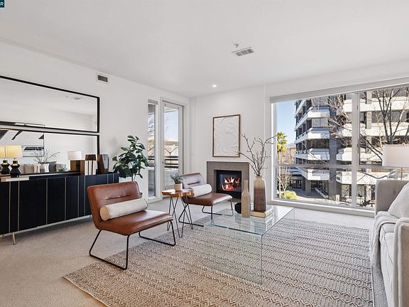 Welcome to The Mercer, where luxury, style, and convenience blend seamlessly to create an urban oasis in downtown Walnut Creek. This sought-after 2-bedroom, 2.5-bathroom floor plan with an additional den offers features tailored for a sophisticated lifestyle. The desirable north-facing orientation provides abundant natural light, a feature that other homes at The Mercer envy. Inside, you'll find a spacious living room with a gas fireplace and large windows that allow sunlight to flood the space. The open design fosters a welcoming atmosphere, perfect for entertaining or relaxing. Step onto the expansive patio to unwind, enjoy the fresh air, or have an intimate dining experience. The gourmet kitchen is equipped with granite countertops, a breakfast bar, a Sub-Zero fridge, and a gas stove. The generous primary bedroom includes a full bathroom and two closets, providing ample storage. The second bathroom is also spacious and comfortable, with plenty of closet space. Additionally, there's a private room that can serve as an office, gym, or extra bedroom, conveniently located across from a spacious half bathroom. The Mercer offers resort-like amenities, including an Olympic-sized pool, a gym, outdoor BBQ areas, and a clubhouse for relaxation or hosting events.