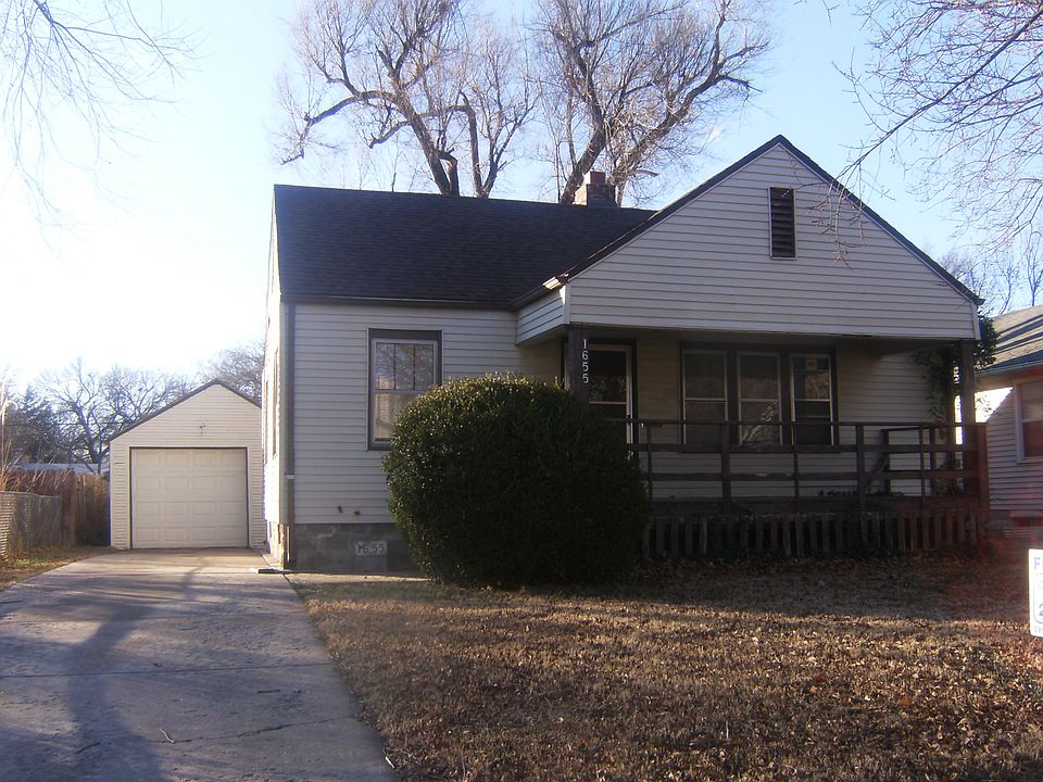1655 N. Woodland Wichita,KS Has laminate flooring In kitchen and living room and carpet in the bedrooms. Repainted wall and trim Deposit:$625.00 Pets:Negotiable Utilities:Residents responsible for all utilities including trash and lawn care. Bedrooms: 2 Baths: 1 Heat and air: Central Kitchen: Range and disposal ? W/D: Hook-ups Flooring: Re-finished hardwood floors ? Sq Ft: 842 Yr built: 1935 Parking: 1 car det. garage Availability:Now Term: 1 Year Internal features: Newly refinished hard wood floors, new vinyl in kitchen and bath. Unfinished basement. External features: Caovered front porch, fenced in yard