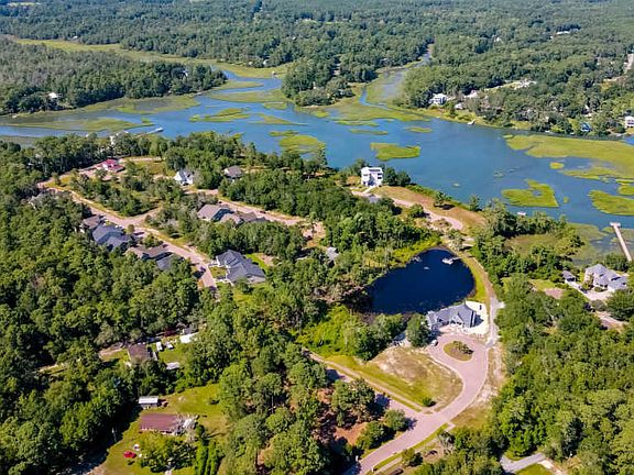 CORNER LOT!! Plenty of room for a pool and custom designed home. LOW HOA dues. Elegant brick paver streets (see pics), fish & crab from the community dock & pier, relax by the community waterfront park w/dock & walk the trails, event lawn and canoe & kayak racks just make this a quaint place to live. Property is fully developed and ready to build. Municipal sewer, water, fiber optic telephone and high speed Internet in place. Boating, fishing via State boat ramp with direct access to Intracoastal 1000' ramp from property. . Hospitals and emergency medical care is close by.