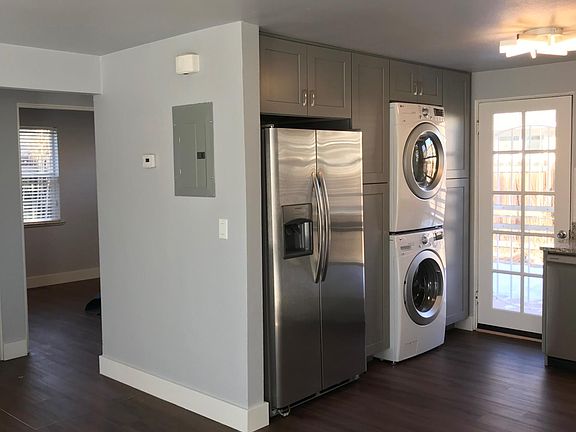 Great location ! On the 40 West Art Line, directly across the street from the Rocky Mountain College of Art and Design, and the iconic Casa Bonita! Close proximity to Edgewater Marketplace/ Sloan's Lake , Wheat Ridge, Belmar, light rail and bus lines. Fully remodeled - Central AC, granite countertops, new cabinets, new appliances and LVP flooring. Gas range, full size clothes washer, dryer and refrigerator. End unit with private fenced patio area ( over 900 square feet ). 2 off street parking spaces. Dogs OK ( friendly dogs ). No cats, Pit Bulls, Anacondas or Ferrets. No smoking ( of any kind ) or vaping. Credit and background check required ( $40 /adult - application fee.) Owner pays for trash and water. Tenant pays gas, electric.
