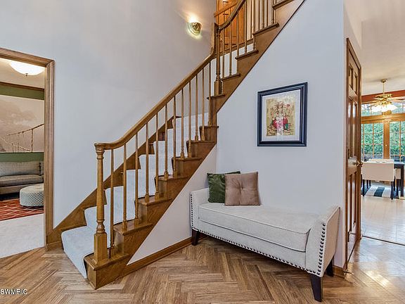This quality Legacy built home is located in popular Bluegrass Meadows in Forest Hills school district. A great floor plan with spacious rooms & a grand 2 story foyer w/herringbone design wood floor. The main floor has 9 foot ceilings, formal living room, formal dining room, family room with fireplace off large kitchen with eating area, center island, granite counters, newer stainless appliances, 1/2 bath and main floor laundry. Second floor has hardwood floors, large master bedroom with vaulted ceiling & private bath with shower & jacuzzi tub, plus 3 additional bedrooms and another full bath. The lower level has new carpet, a large finished rec room, full bath and plenty of storage. 1 1/2 year Smart technology furnace helps lower bills. Roof approx 2 years. Just minutes to shopping, malls, downtown Grand Rapids and airport. Forest Meadow Park and lighted trail to Meadowbrook Elementary all within a short walking distance in the neighborhood. Good sized patio and composite deck.