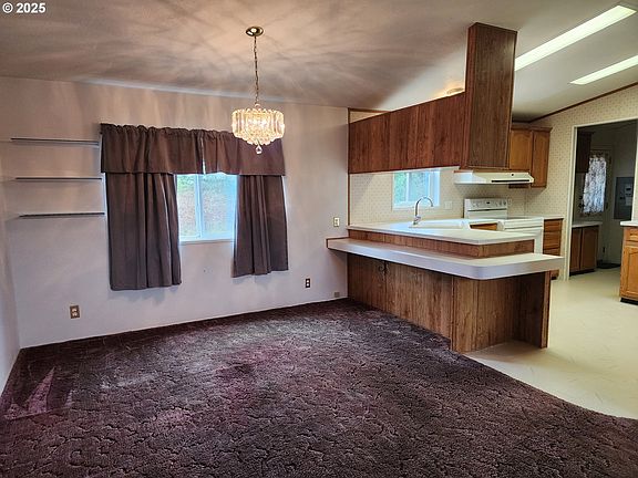 Drive by the LG lake as you enter this well established family park in Canby. Park in the detached two car garage or driveway surrounded by walkways to keep things clean and well maintained. Home is ready for you to enjoy and feels spacious with the vaulted ceilings and great room style. Primary Bedroom with walkin closet and a bath with soaking tub and seperate walk in shower. Large utility room leads to nice covered deck overlooking the private green space. Must have park approval to enjoy living in this quality home.