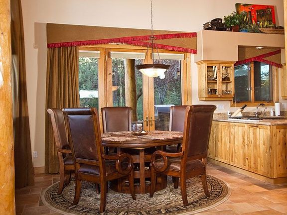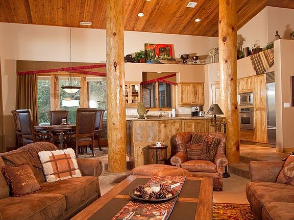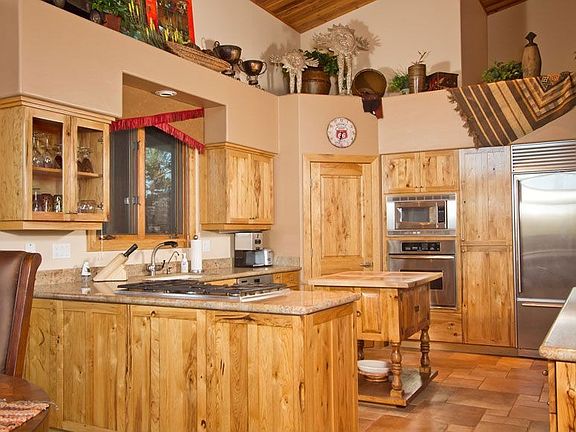 Not just your little cabin in the pines, this rustic Lodge-style treasure is privately nestled in the Hassayampa Country Club. Approximately 2739 square feet designed to create an open airy feel with warm peel pole accents, 18' tongue in groove ceilings and knotty alder cabinetry. The luxurious master suite includes a romantic fireplace, spacious granite counters, walk-in closet and exercise room (or 2nd closet). A Chef's kitchen can be found indoors plus an outdoor BBQ kitchen to enjoy forest views and cool Prescott evenings. Three bedrooms, 2 ?? baths and a 2-car garage set on a quiet cul-de-sac.