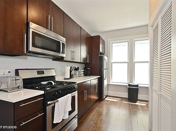 A+ Lakeview location! Recently remodeled 1bed/1bath apartment. Located only a few blocks away from the Brown Line. Unit boasts hardwood floors throughout, large patio area drenched in sunlight, large living and Bedroom, kitchen w/ full stainless steel appliances w/dishwasher and IN Unit Wash/Dryer. Espresso cabinets & Calcutta Quartz counters. Bathroom with Italian porcelain tiles & soaking tub. Central Heat & AC. Agent owned. NO SECURITY DEPOSIT HELD, ONLY NON REFUNDABLE FEE'S OF MOVE IN $500 DUE AT LEASE SIGNING. AVAILABLE 5.1