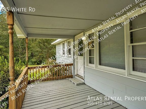 Welcome to 1655 White Rd in Warrior, AL! This charming 3 bedroom, 2 bathroom home boasts a spacious yard perfect for outdoor activities. The interior features granite countertops, a dishwasher, air conditioning, hardwood floors, and a cozy cosmetic fireplace. Enjoy the convenience of a laundry room and a large den for additional living space. Relax on the covered front porch or entertain on the covered back porch overlooking the wooded lot. The bay window allows for plenty of natural light, and the modern paint colors create a fresh and inviting atmosphere. Located in a beautiful area, this pet-friendly home is perfect for those looking for a peaceful retreat. Don't miss out on this wonderful opportunity to make 1655 White Rd your new home!