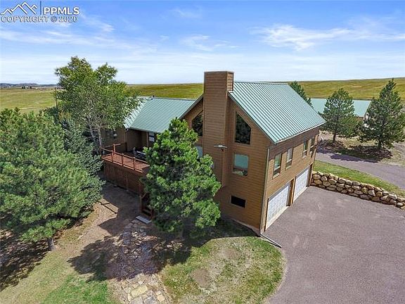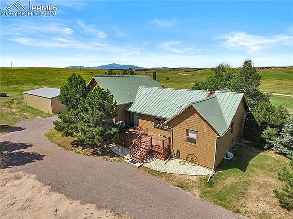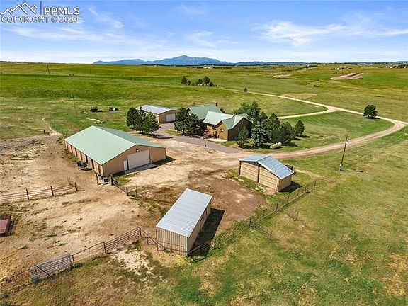 Rare opportunity to purchase a completely turn key horse property w/ 19 acres, heated garage parking for 16+ vehicles and a remodeled home in a sought after part of Black Forest near the new Flying Horse North community and golf course! 70x42 insulated barn currently w/4 stalls (tons of additional stalls could be added), water, electric and a concrete floor. Outbuilding 40x60 w/ heat, concrete floors, large overhead door and spray foam insulation. Attached heated 4 car garage. Two newly remodeled baths. No HOA or covenants. Property could be subdivided into smaller parcels with county approval. Valuable water rights included for additional wells. High quality Andersen Windows. Fantastic mountain views. This home is loaded with upgrades: cypress and oak hardwood floors, hot water radiant in floor heating, travertine tile. Expansive great room with an open loft above, glowing cyprus hardwood floors, 20ft+ vaulted ceilings, large windows with mountain views and a gas log fireplace with stone surround. Open kitchen with an abundance of cabinetry, gas cook-top, double oven, Corian counters, wide plank oak hardwood and spacious kitchen pantry. Multiple outdoor entertaining spaces with two new composite decks (one on the east side and one on the west side of the house). Main level master suite with an antique vanity w/ marble counter and brand new shower with seamless door. Beautiful completely remodeled guest bath with new vanity, new tile floors, tiled shower and new shower door. The acreage is fenced and cross fenced. Award winning School District 38. Fantastic access to Highway 83 and I-25. Quick commute to Colorado Springs or Denver.