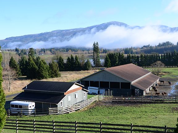 Fabulous 9.2 ac EQUESTRIAN FARM near Big Lake. Newly sanded 10,000 sqft indoor riding arena w/lighting. 7 12x12 stalls w/PADDOCKS that lead to fenced pastures. HOT/COLD Wash Rack, Mud & Tack rm w/lockers. 4 Open stalls w/direct access into the arena & pasture. 40x48 CUSTOM SHOP w/Private storage & garden shed. 3312 sqft 3 bed/3 bath rambler w/finished daylight. 2 wood burning fireplaces. Enormous Master Suite w/5 piece bath & access to deck for enjoying sweeping views of Mt. Baker & Cascades