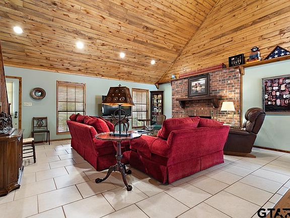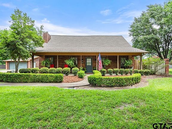 Custom cabin by the lake is a DREAM, starting at the curb! Absolutely gorgeous curb appeal on this 1999 build home with GUEST HOUSE on an acre (INCOME POTENTIAL!). The landscape, and well-maintained property are truly eye-catching. Enjoy mornings with a stunning landscape view on the front porch swing, while listening to the birds and frogs in the background. There are 1,530 square feet in the main house. As you enter, you'll find a huge living room with vaulted White Aspen ceiling and custom woodwork trim (which is found throughout the home), low-maintenance tile floors, and wood-burning brick fireplace with Heatilator insert. Open concept with nice-sized dining area, and kitchen surrounded by a breakfast bar. Kitchen has Jen-Air ceramic cook-top range, new dishwasher, and window over the sink with a view of the pool. Functional kitchen holds ample counter and cabinet space, and has a pantry in the hallway. You won't miss out on the conversation while you cook! On the main floor is bedroom number one, full bath, and utility room. The primary bedroom has good closets, and another Aspen ceiling. Primary bathroom has jetted tub and separate shower. The upstairs loft is a great space with it's own closet and half bath. Would make a great office, workout room, or bedroom. Could be walled in to create more privacy. Separate 492 square foot guest house that is just as cute as can be! Vinyl flooring throughout. Full kitchen with refrigerator, sink, microwave, stove and breakfast bar. Full bath with shower, and washer and dryer hook-ups in the two-car garage. For outdoors lovers, the covered patio is just amazing! Tiled floor, granite bar and cabinets, wired for sound, and view of the lovely sparkling gunite pool with rock waterfall, and more gorgeous landscape. Fully fenced with wood and brick pillars and iron gate. Sprinkler system. Two-car garage. Large driveway. This one is a true gem in this realtor's opinion! See for yourself! It will not disappoint!