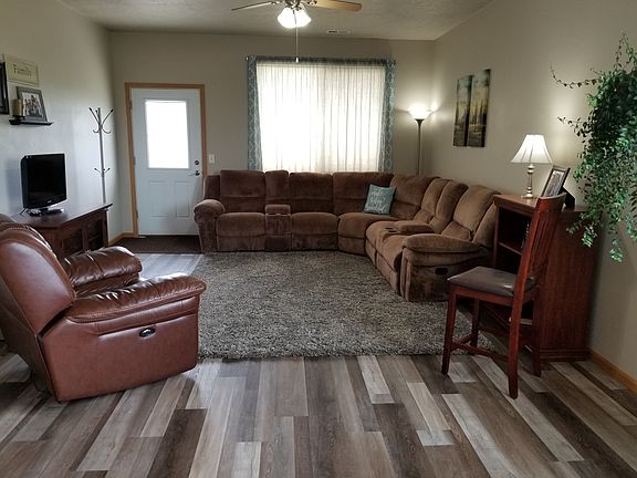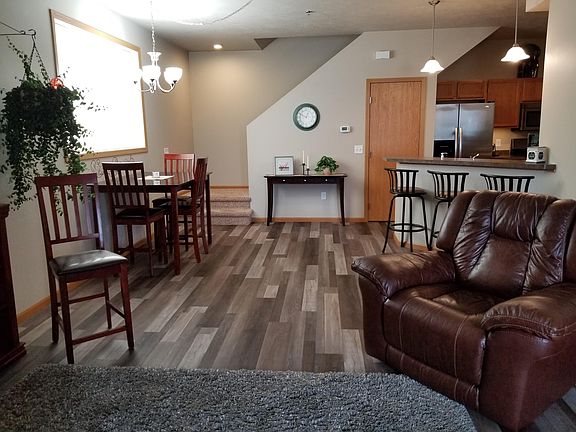 Storage galore in this immaculately clean end unit condo in SE Minot. It is beautifully updated with LED lighting throughout the unit, motion sensor lights in a finished furnace room which includes extra pantry cupboards, a gas stove (which also has outlet for an electric range) , new flooring on the main level, and extra cupboards added to the bathrooms and laundry room. There is under cabinet lighting that dims to create that special ambience. And if that isn't enough, it is conveniently located close to the Minot Country Club. Upon entering, you will immediately notice all the natural light from the large window which faces south. There is an open concept for the living room, dining room and kitchen which includes an island. There is a convenient half bath also located on the main floor. The 2-car attached heated garage is fully finished as it has been taped, textured, painted, and has a beautiful epoxy floor. You can easily use this as an extension of the home. The master bedroom has an en suite as well as a walk-in closet with a window and extra cupboards for more storage. A second walk-in closet can be found in one of the other two bedrooms. The third bedroom and other full bathroom are also located on the upper level. The large laundry room is conveniently located by the 3 bedrooms - and guess what? It has extra storage too! This is a must see!!!