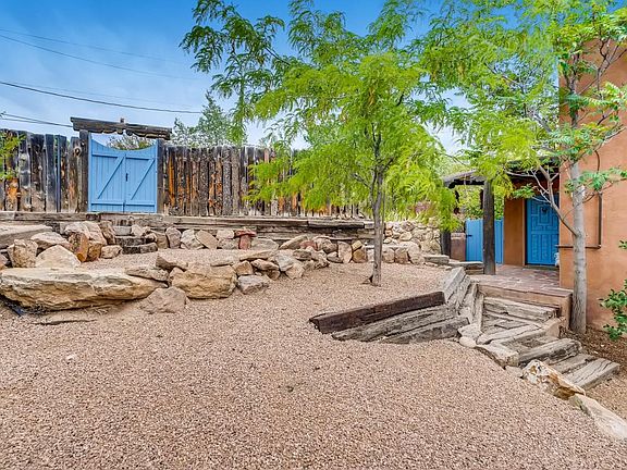 Located in Cerro Gordo's beautiful historic district and minutes from Santa Fe's trail systems, this 2454 sq. ft. 3 bedroom/2 bath property offers the Buyer incredible flexibility. On a view-filled, fenced lot with upper and lower parking areas, this Southwestern style property's upper level has a living/dining/kitchen open concept design with a large owner's suite and office. The lower level of the house can be accessed from within and also has its own entry. This lower level has 2 bedrooms, 1 bathroom, and a living area that is connected to a flexible room outfitted with water and plumbed for another kitchen. Perfect for an in-home studio OR for creating an income producing unit on the lower level! Minutes to The Plaza and around the corner from a trailhead, this property has a great location, flexibility of use, views and Southwestern charm. A 3-D Virtual tour of this property is available.