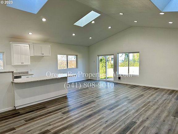 Available around 11/20/2024. Coos River Hwy is a very spacious home with views of the bay and the North Bend Bridge! 2,600 sq feet of living space with 2 living rooms, 4 bedrooms, 3 1/2 bathrooms, marble/granite countertops, self-closing drawers in the kitchen, recessed Lighting, and skylights throughout! Pellet Stove was installed in 2023. The Garage/Shop is 902 sq. ft. with 3 bays and one goes through to the backyard for easy access! Pet possible subject to management approval. Renters' Insurance required. Tenant responsible for all utilities and basic yard care. $50 application fee. Rent: $2,700 Security Deposit: $3,510. @ 783 N. Bayshore Dr.