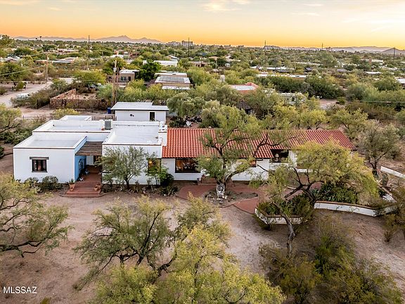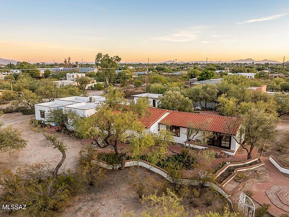 Rural Living in the heart of Central Tucson. The charm of Richland Heights West neighborhood uniquely preserves the beautiful desert flora and wildlife with spacious lots, dirt roads and limited traffic access. Convenient to U of A & Banner UMC. Discover the perfect blend of Mid-Century and Southwestern elegance. This 4-bdrm, 4.5-bathrm, 3795 sq. ft. retreat is nestled on 1.65 acres of serene desert landscape with mountain views. Enjoy the formal living room with large fireplace, spacious family room w/2nd fireplace, split bedroom plan, office, guest quarters, and studio/bdrm. The eat-in kitchen offers a comfortable space for everyday dining and entertaining. Mature trees, a natural stone pond with cascading waterfall, firepit, and relaxing gazebo create a tranquil oasis. The converted garage serves as a versatile workshop, perfect for hobbyists or creatives. Ample space and a peaceful setting make this the ideal opportunity to create your own unique desert sanctuary.