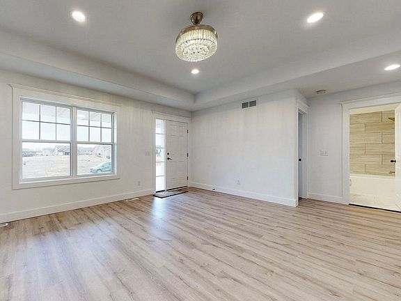 This brand new house is located in a family-friendly neighborhood in the highly sought-after Linn-Mar School District! This new house borders a detention pond and Hunters Ridge Golf course, ensuring unobstructed natural beauty in all seasons. The main level has carpet in the bedrooms, tiled bathrooms, and durable vinyl floors in the kitchen, dining area and living room. The master bedroom and living room feature coffered ceilings. The large master-bathroom has to be seen to be appreciated! An extra room on the main floor could be used as either an office/study or bedroom for young child. The main floor living area features a custom-designed fireplace with solid oak mantel, pre-wired TV and internet outlets, retracting ceiling fan and a security system hookup. The kitchen features granite counter-tops, including eat-in island, tiled backsplash, brand new stainless steel appliances and solid maple wood cabinets. The main level also includes a separate pantry and laundry area off the kitchen. Utilities include a tankless water heater, which provides unlimited hot water upon demand. No expense has been spared on the finer details of this home. All trim in this house was custom made from solid wood 1" by 6" baseboards and 1" by 4" boards for window and door casings. Trim-work has been customized and chamfered to match the chamfered wall corners. The basement provides a huge finished living area with large ground-level windows ensuring a light and spacious feel. Vinyl-floored great room on lower level is pre-wired for TV and internet. It is large enough to accommodate kids' play-room, adult entertainment area, a gym or office space as desired. Three carpeted rooms on the lower level could be used as bedrooms, craft rooms or additional home-offices. The basement includes the latest in emergency management with a concrete-walled storm shelter under the front stoop, which doubles as a secure storage room. Additional storage space provided in the walk-in closet under the stairs. The home features a large side yard perfect for adding kids' swing-set, etc. The back yard benefits from a newly-installed privacy fence along the length of the backyard. Need to add a 3 stall garage? That is easy enough to do as well! One of the main attractions of this home is the generously sized deck which leads to a concrete out-door sitting area that is completely private from most angles. Do not miss out on seeing this home today!