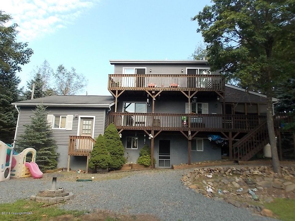 Lovely Contemporary residence in amenity filled EMERALD LAKES This would be a great investment home or primary. Make money on rentals and use the house for your vacations for fee. Impeccable landscaping Home features 3 bedrooms 2 full baths Large screened-in porch with gas firepit 2 large decks front and rear of home Incredible view of mountains Home features oversized garage with walk-up attic Brand new septic All appliances stay NEW whole house Generator Stay warm during winter sitting by the brick faced fireplace and also the lower level wood burning stove in Fam Rm or gather in fully finished basement Great for entertaining Close proximity to I-80 and 380 Camelback Ski & Waterpark Great Wolf Kalahari Crossings Outlets and more
