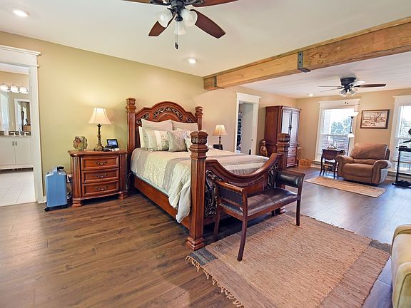 Bring The Horses! 22.7 UNRESTRICTED acres boasting a balance of Fenced pastures & Wooded riding trails. 2700+ sq ft of htd living space, 3BR/3BA w/ TREMENDOUS Owner suite perfect for HUGE furniture! Walk-in Closet, Generous bath updated w/ shower & dbl vanity, Wide doors w/ ADA in mind. 24ft Soaring Ceiling in Entrance Living room. Gas log fplc, ALL NEW WINDOWS throughout the house.Pergo Floors. Kitchen w/ <3yr old appliances. Mudroom has full bath & laundry w/ access door to the farm. 1 Car gar. Upper level w/ 2 Spacious BRs & a beautifully remodeled bathroom w/ soaking tub. Leaf Filter Gutter System. Sunsets from the front porch. Barn w/ equipment stalls, 2 horse stalls, tack room, bonus room & a septic. Additional older buildings on property. Multiple building sites. Live the dream, Homestead, ride your toys, raise farm animals. Public water.