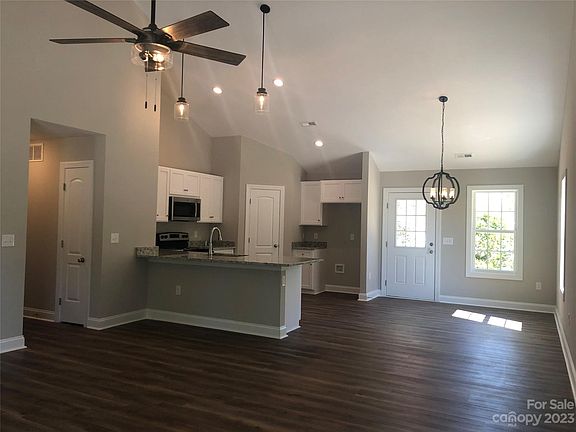 Don't miss this beautiful new construction home in a pretty neighborhood. This house features an open floor plan with lots of space for oversized furniture and a large dining area. The lot is beautiful with large mature trees. Vinyl plank flooring, granite countertops, and stainless steel appliances. Space outside as well with a covered front porch and a concrete patio.