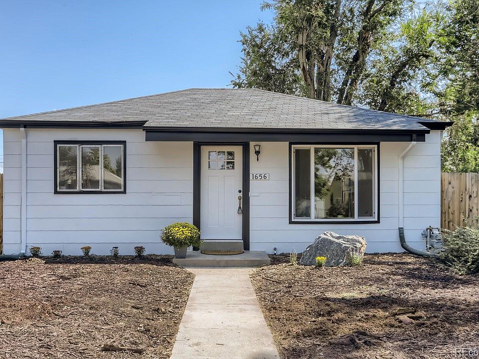 Best priced home for condition on the market! Darling two bedroom bungalow with tons of light! Original wood floors through out. This home has been freshly painted inside and out. It sits on a huge lot with newer fence. The detached garage is great for all your Colorado toys. At this price it will move fast perfect as a rental or starter home. Close to Anschutz Medical Center and a hop skip and a jump to Stanley Marketplace.