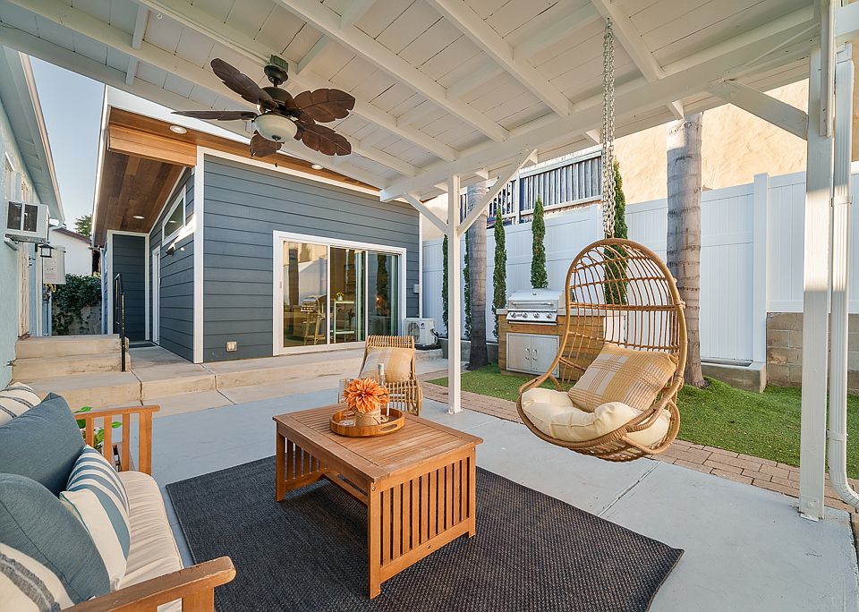 The Location & Lifestyle: Located directly on Pacific Beach Drive, your daily routine involves walks along Mission Bay (just a 3-minute walk) or surfing sessions on the Oceanfront (a quick 10-minute walk). The Casita shares a beautifully landscaped backyard, offering a perfect communal escape complete with dining, lounge seating, and a BBQ area ideal for hosting friends or relaxing after a day at the beach.