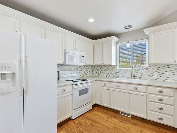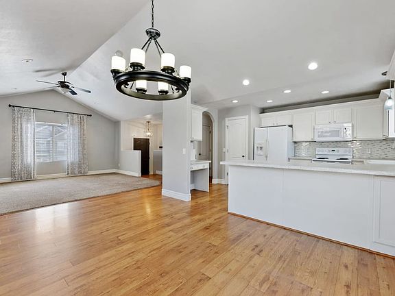 Raised rambler on a quiet street in the coveted Farmington Ranches neighborhood. 4 bedrooms, 3 full baths, oversized garage, large RV parking, vaulted ceilings, lots of storage, beautiful mountain views, fully fenced spacious yard, mature trees, large deck and garden boxes. Comes with play set and trampoline. Recent updates include a new roof, garage door, lighting, flooring, and kitchen. Close to great schools, Station Park and trails.